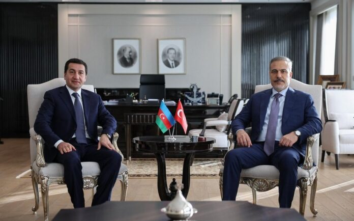 Türkiyə xarici işlər naziri Hakan Fidan Azərbaycan Prezidentinin köməkçisi – Prezident Administrasiyasının Xarici siyasət məsələləri şöbəsinin müdiri Hikmət Hacıyevlə Ankarada görüşüb.
